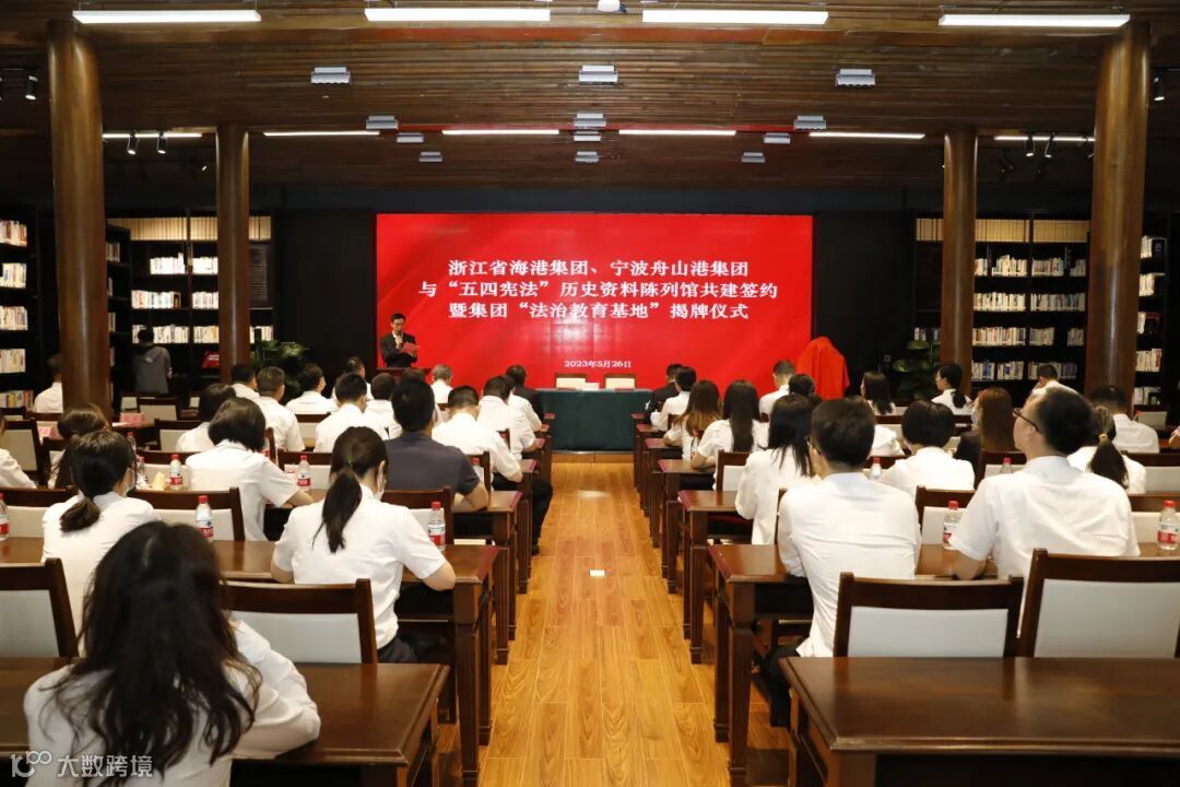 5月26日上午,浙江省海港集团、宁波舟山港集团与“五四宪法”历史资料陈列馆(以下简称“五四宪法”馆)在杭举行“法治共建单位 法治教育基地”签约揭牌仪式。“五四宪法”馆负责人,集团相关职能部室负责人,在杭各基层单位总法律顾问、相关部门负责人及法律工作人员参加了仪式。
