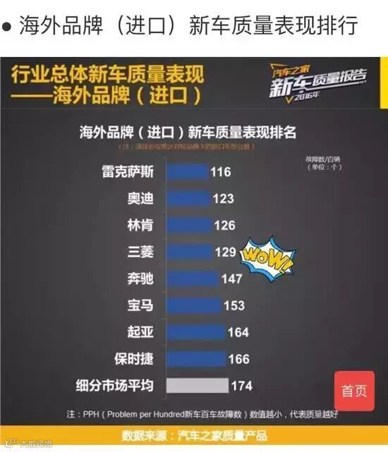 除了广汽三菱喜获佳绩外,三菱同样表现不凡,在三项排名中均排名前列,获得了海外品牌(国产)新车质量表现排行TOP6、海外品牌(进口)新车质量表现排行TOP4、2016乘用车品牌整体新车质量表现排行TOP8的好成绩。