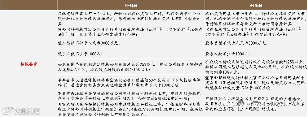 从转板规则来看,北交所转板至科创板或创业板的要求基本类似。北交所上市公司转板至科创板或创业板属于股票上市地的变更,不涉及股票公开发行,依法无需经中国证监会核准或注册,由上交所、深交所依据上市规则进行审核并作出决定。