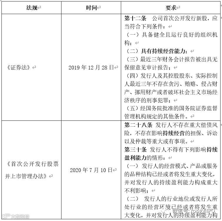 与持续盈利有关的IPO法规