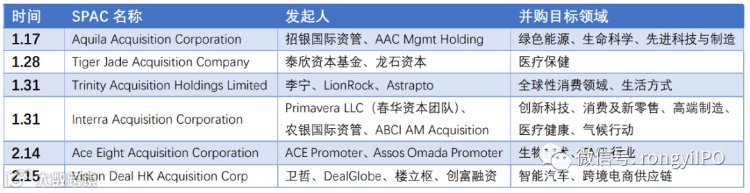 港交所目前6家申报披露招股书的SPAC企业如下: