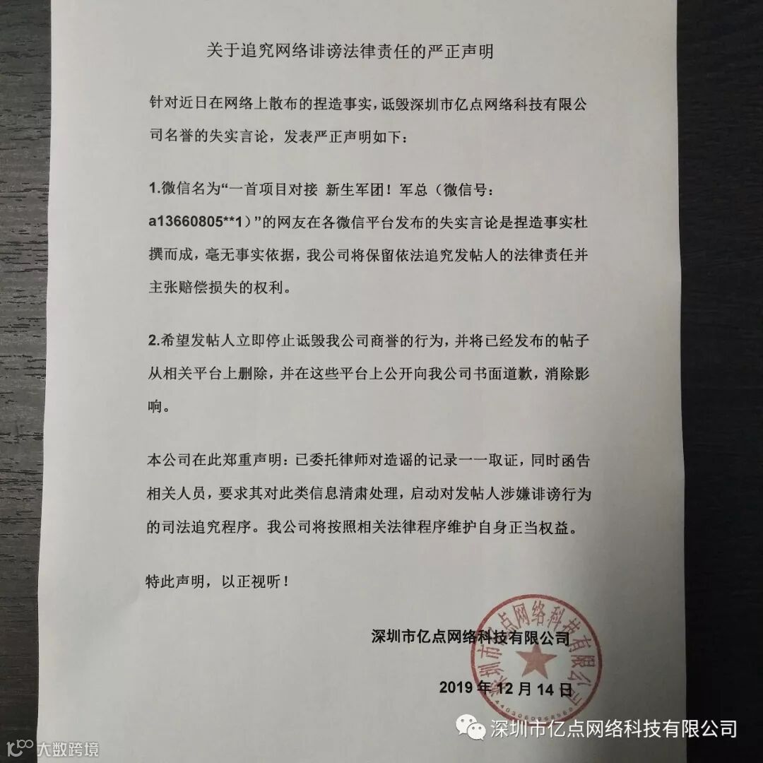 关于追究网络诽谤法律责任的严正声明