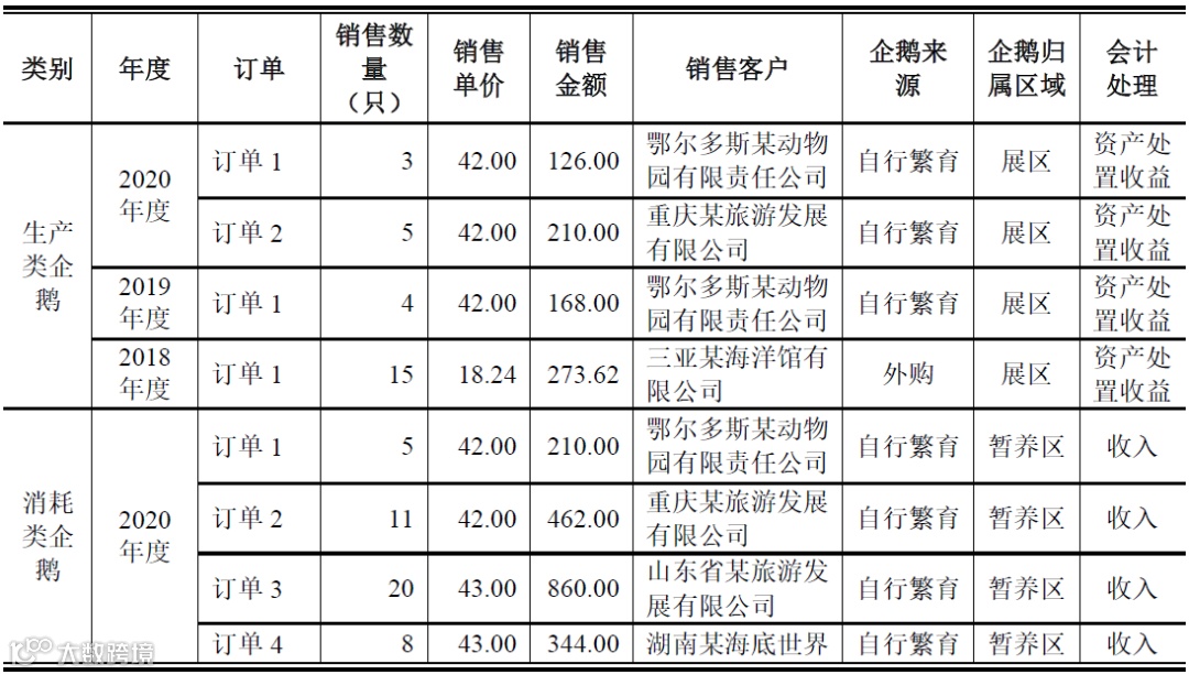 第二,2020年度公司将暂养区企鹅(消耗性)销售全额计入收入,展示区企鹅(生产性)销售净额计入资产处置损益;上交所现场检查时公司提供的企鹅电子表格台账仅记录不同区域企鹅的编码列表,未对应企鹅个体信息,未反映企鹅实际饲养区位的变动情况,也未与企鹅销售合同形成对应关系;公司内部控制不能支持企鹅分区的合理性,也就不能支持相应会计处理的合理性。