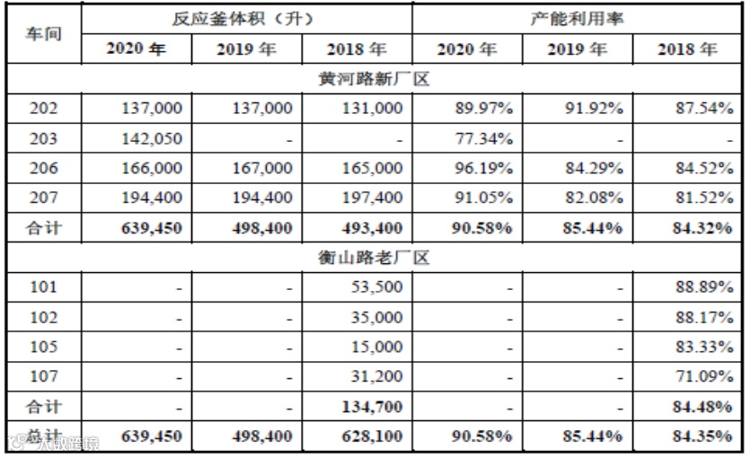 通过上表披露信息,计算可以得出,202/206/207三个车间2020年度较2019年度产量增加了7.9%,与公司披露的产能增长28.30%相差甚远。