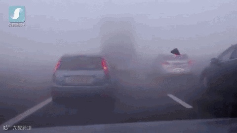 由于团雾突然出现、难以预报,驾驶人猝不及防、视线突然受阻,本能急踩刹车,容易导致车辆追尾。
