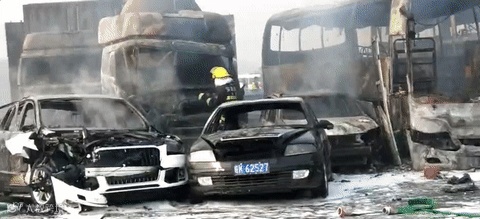 该事故事发当天,受团雾天气影响,安徽阜阳滁新高速颍上段发生多点多车追尾,部分车辆起火,现场有70多辆车不同程度受损,事故共造成18人死亡。事故原因为早上突发团雾天气,能见度低于百米。