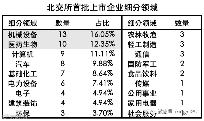 首批上市的81家企业中,表面看起来工业及制造业等传统行业仍占半壁江山,但这些企业的共同特征无疑包括创新,这也是这些“新传统行业”得以在北交所上市的必然要求。
