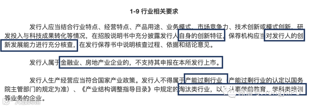 在北交所上市审核核心文件《北京证券交易所向不特定合格投资者公开发行股票并上市业务规则适用指引第1号》中对行业进行明确要求,多次提及对企业创新能力的重点审核,另外对五大类行业进行明确上市限制: