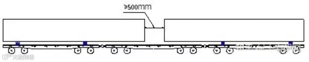 3)两件到达同一卸车地点的超长货物在同一地装车时,可以共用一辆游车,两货物突出端间距不得小于500mm。