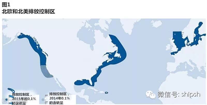 《防污染公约》附件六(MARPOL Annex VI)要求从2015年1月1日起,在北美、北海、波罗的海和加勒比海的排放控制区(Emissions Control Areas,ECA)海域,班轮公司的船用燃油的含硫量不得超过千分之一(0.1%),而不是当前的1%(图1)。这项俗称“硫税”(sulphur tax)的燃油额外成本支出,对于班轮公司、货主和港口管理部门意味着将会受到不同程度的影响。