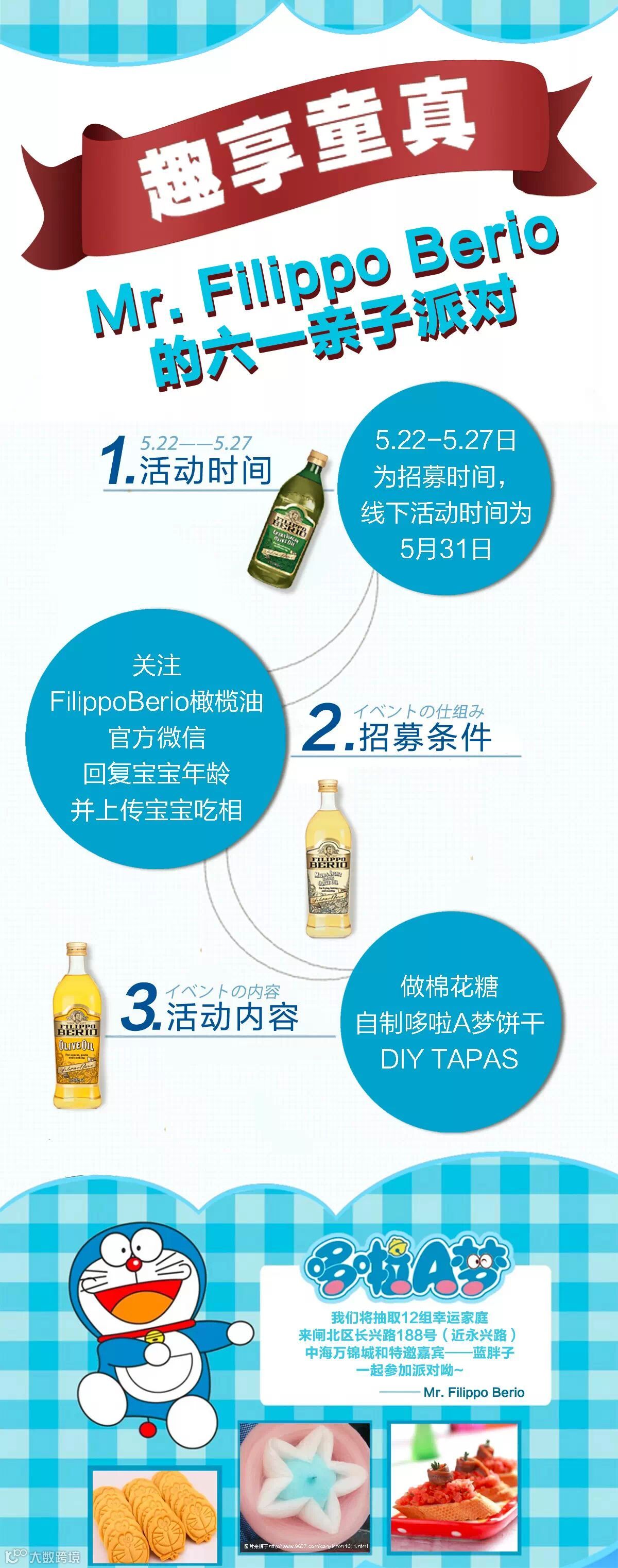 赶快报名参加Mr. Filippo Berio的六一亲子派对吧!来现场发现更多惊喜道具