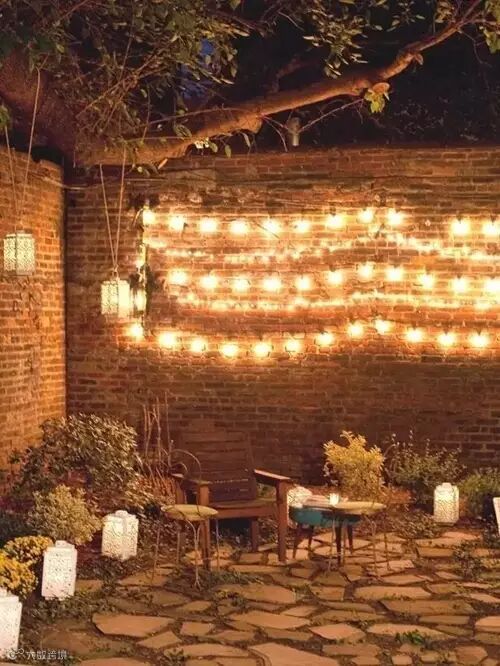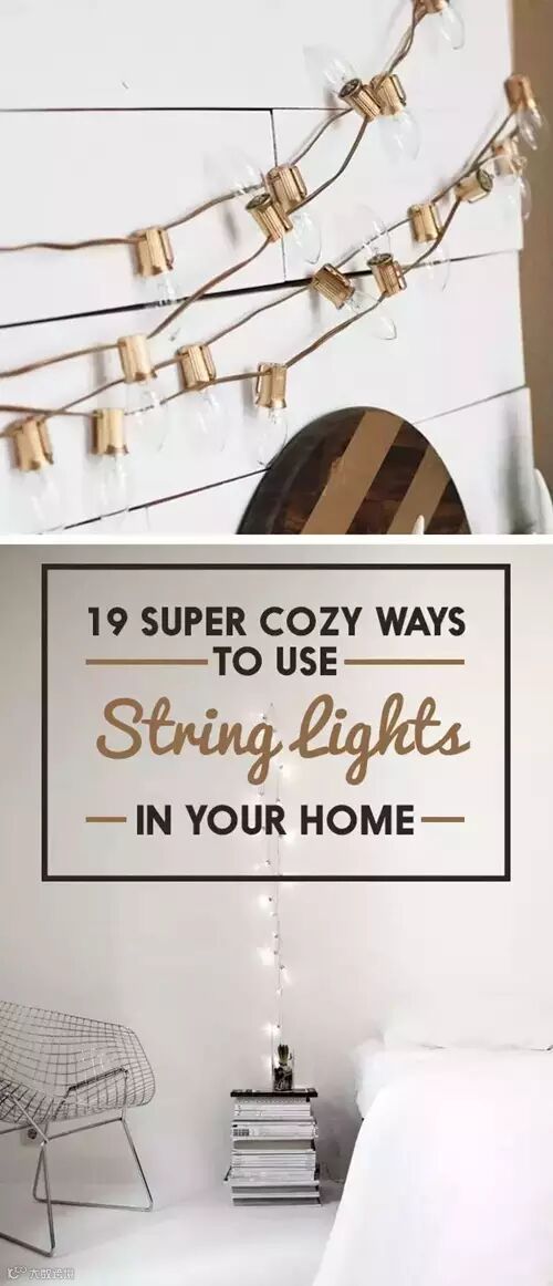17.如果你想迅速制造有户外情景气氛的灯光,沿着墙壁挂满串灯就好了。