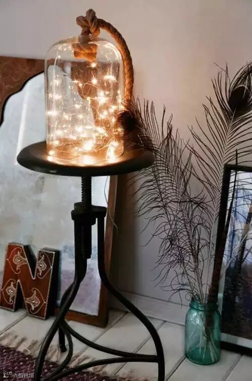 9.把装电池的串灯放在玻璃钟罐里,一件带有艺术感的DIY灯饰就出炉喽。