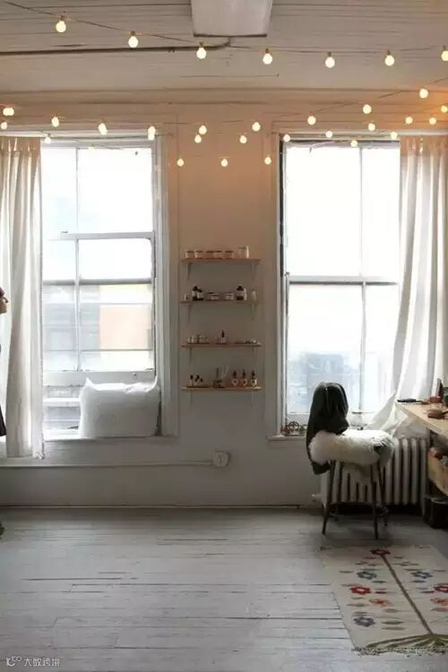 19. 如果其他方式都不成功,就在墙上挂满串灯,让整个空间像星空一般闪亮。