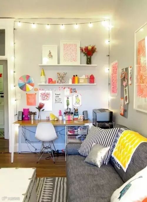 4.如果你睡在宿舍的下铺,将串灯从顶部垂挂着,这样会显得格外温馨。