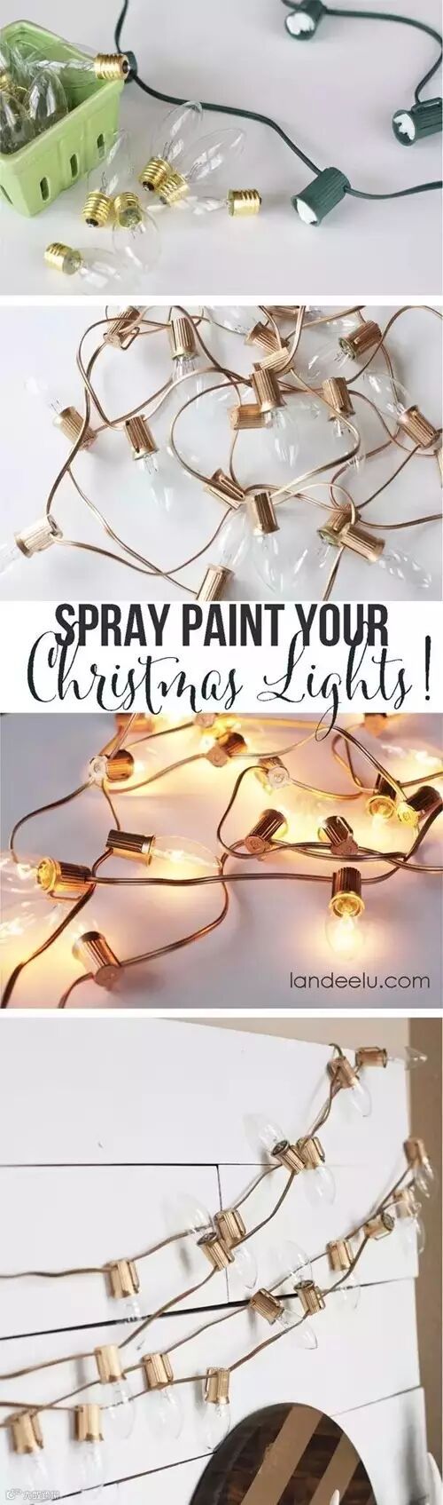 18.节假日,将绿色的灯泡喷上金色的漆,让它们金光闪闪。