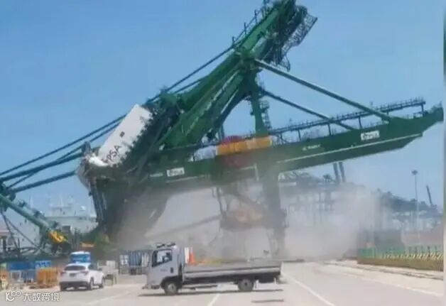 新加坡海事及港务局(MPA)报告称,6月15日下午,一台新交付的码头起重机在新加坡大士港非运营泊位发生倾覆重大事故。新加坡港务局(PSA)表示,事件中没有人员伤亡报告。