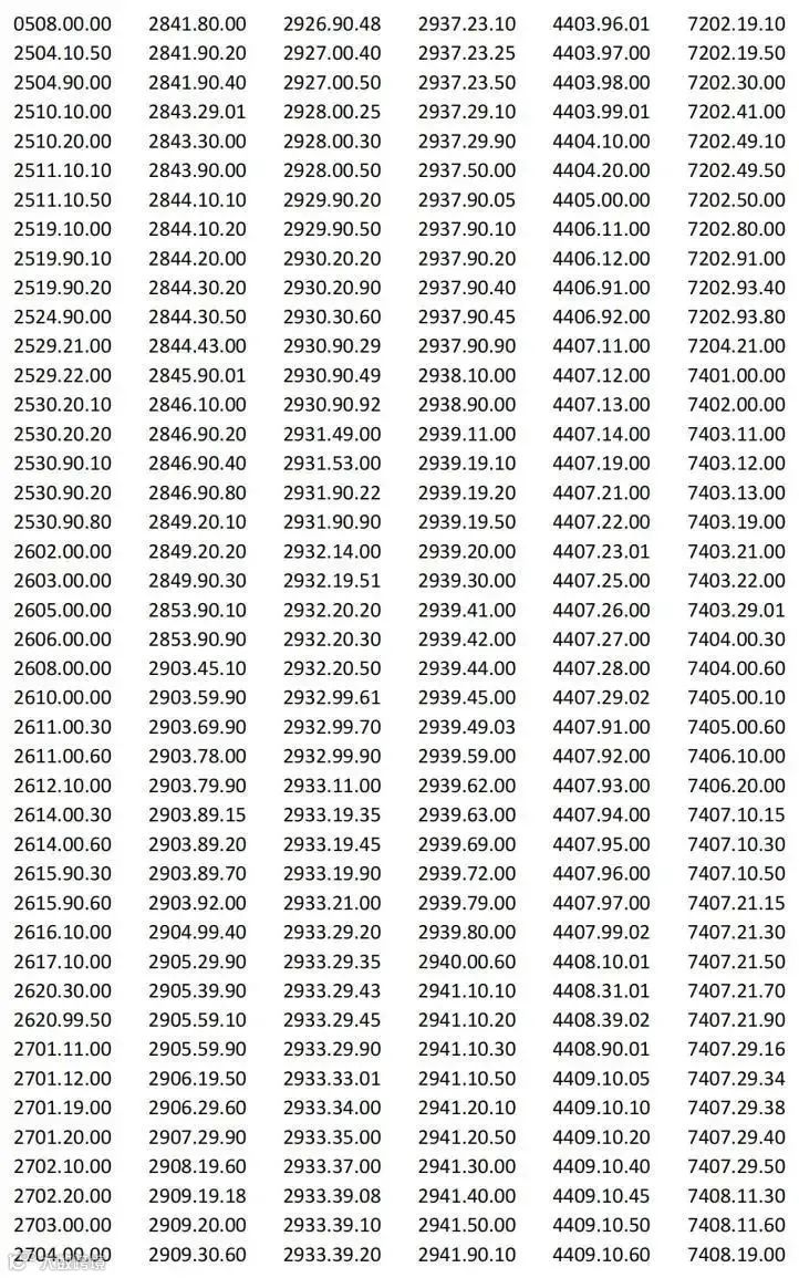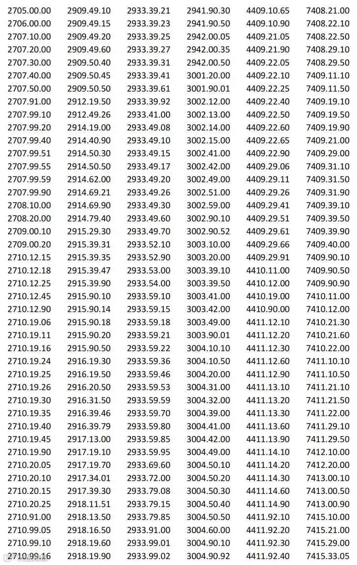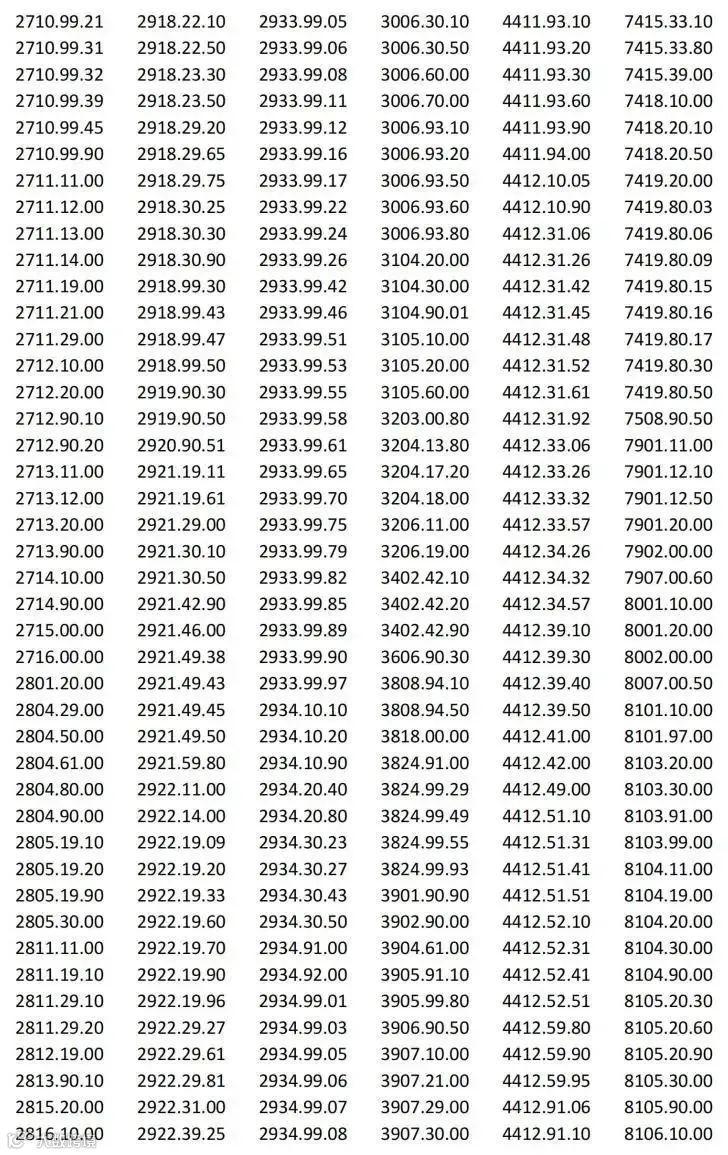 以下产品清单税号,豁免对等关税: