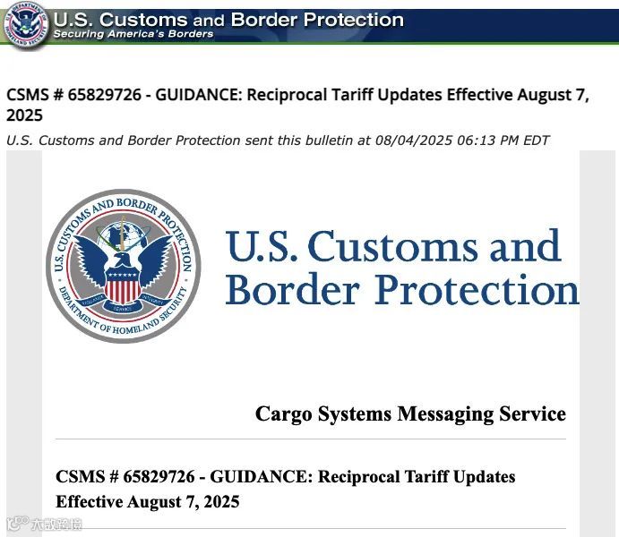 美东时间周一(8月4日),美国海关和边境保护局(CBP)发布特朗普调整后的对等关税行政令实施指南。