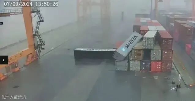 据报道,海防市MPC港有2台起重机倒塌,包括1台门机,1台岸桥;此外还有很多集装箱被风吹跑。