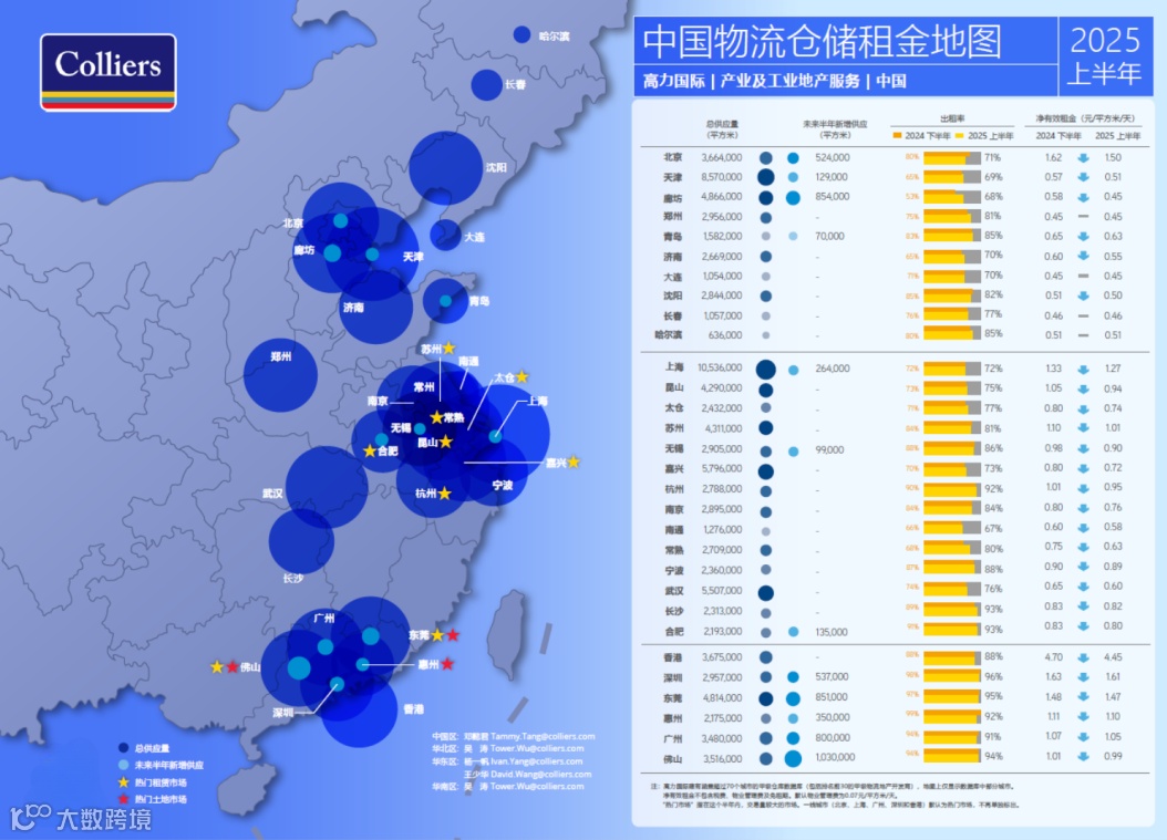 2025年上半年,华北区物流仓储市场新增供应量整体放缓,需求端以存量租户降本搬迁为主旋律,短期内租金预计仍处于下行通道,但降幅正持续收窄。