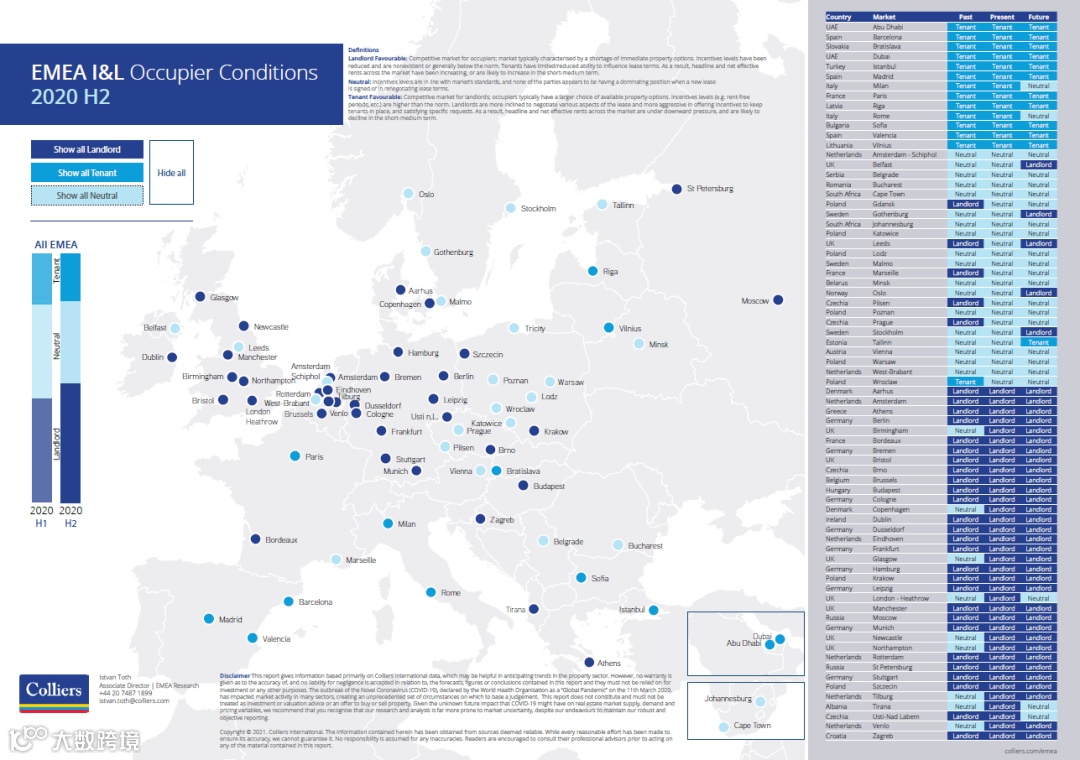•EMEA物流仓储租金地图2H2020