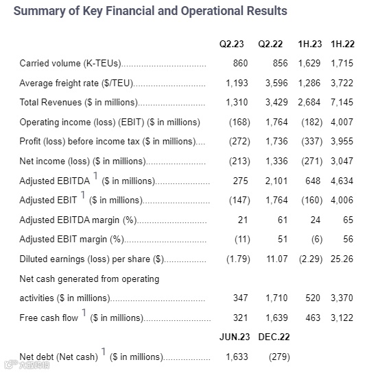 近日,ZIM以星航运公布了2023年第二季度及半年财报,数据显示第二季度收入下降62%至13.1亿美元。净亏损为2.13亿美元,其公布的第二季度亏损远超分析师预期。而2022年第二季度净利润为13.4亿美元。