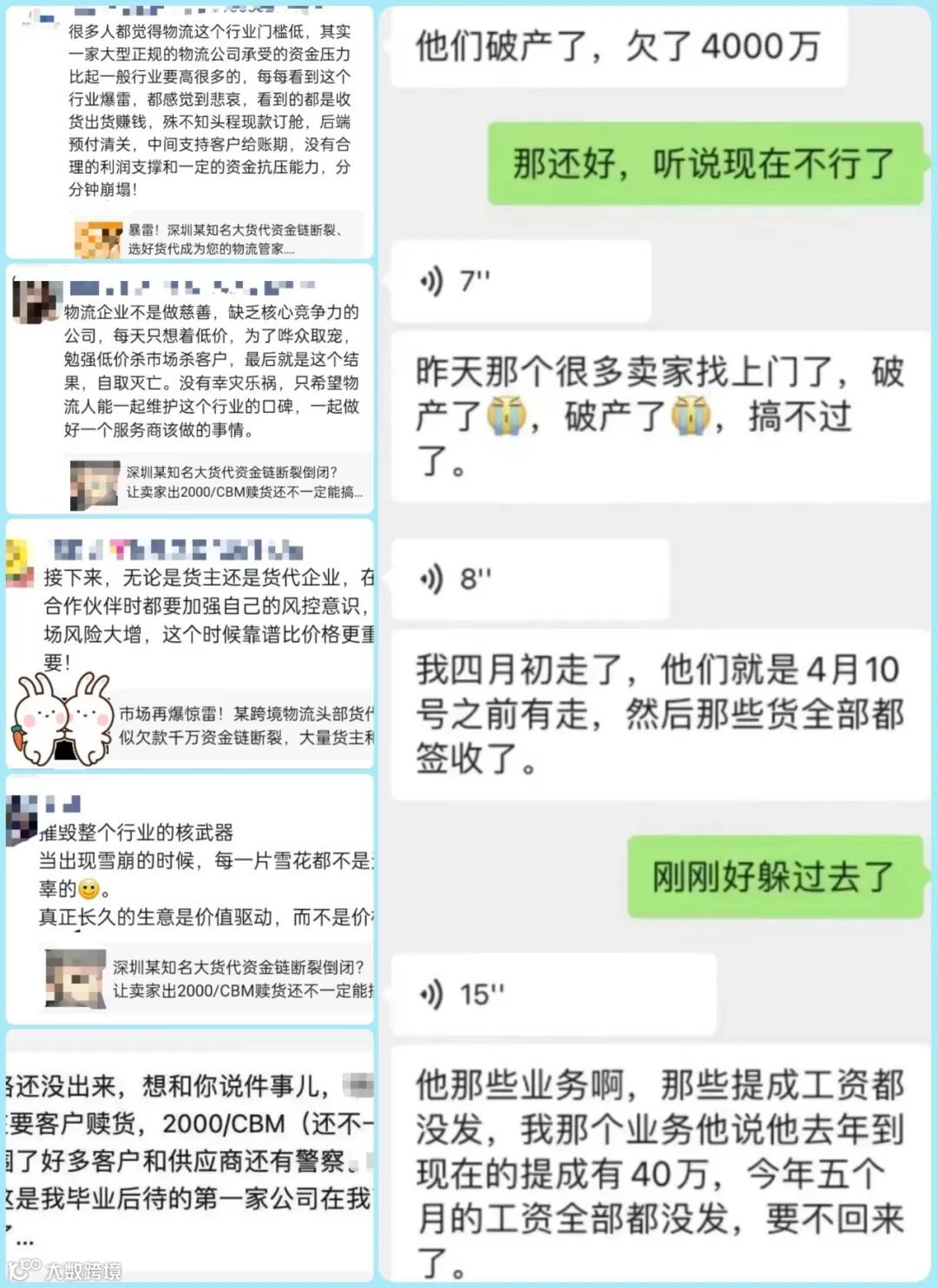 根据网友的爆料,这家企业在事发前就出现了持续的内部欠薪和外部欠款情况。虽然具体欠款金额不详,但有合作客户透露欠款金额可能高达4000多万之巨。截至5月31日,不少卖家、货主、供应商和货代同行已经到该公司前台及办公区域围堵。由于事件的发酵,后续可能会有更多涉事企业上门索要欠款。