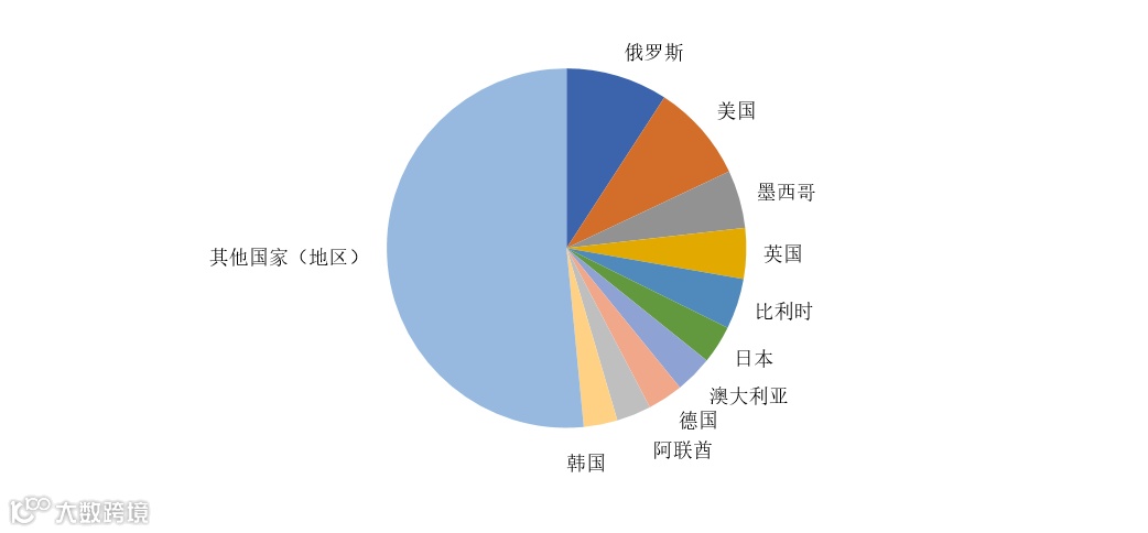 与上年同期相比,美国出口金额同比微降,其余各国出口金额均呈正增长,其中比利时、俄罗斯和阿联酋增速更为明显
