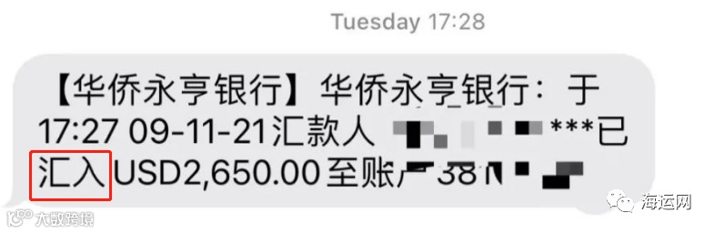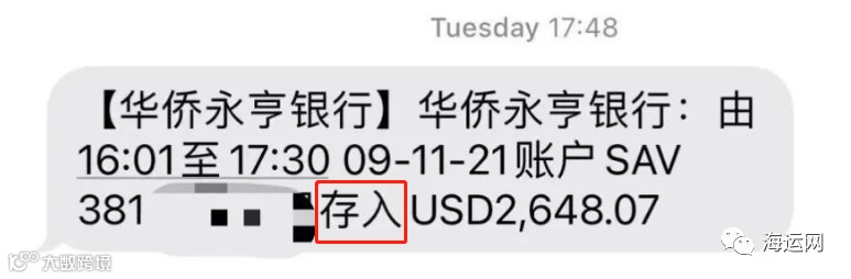 比如这个香港华侨永亨银行的企业账户收到的短信,第一条是到账;第二条存入才是真正的入账,才是不可撤销的。
