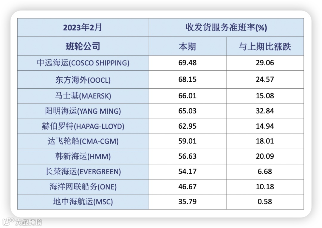 航运交易所发布的2023年2月反映全球集装箱班轮班期状况的两个指数,即收发货