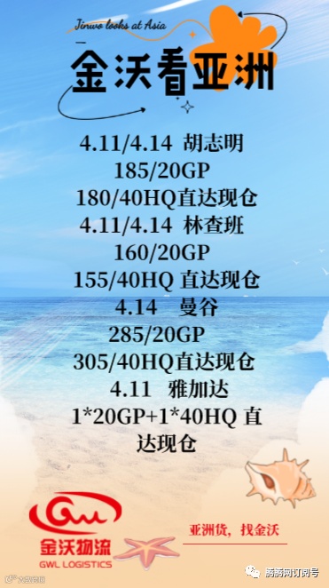 4.11/4.14 胡志明 185/20GP 180/40HQ 直达现仓4.11/4.14 林查班 160/20GP 155/40HQ 直达现仓