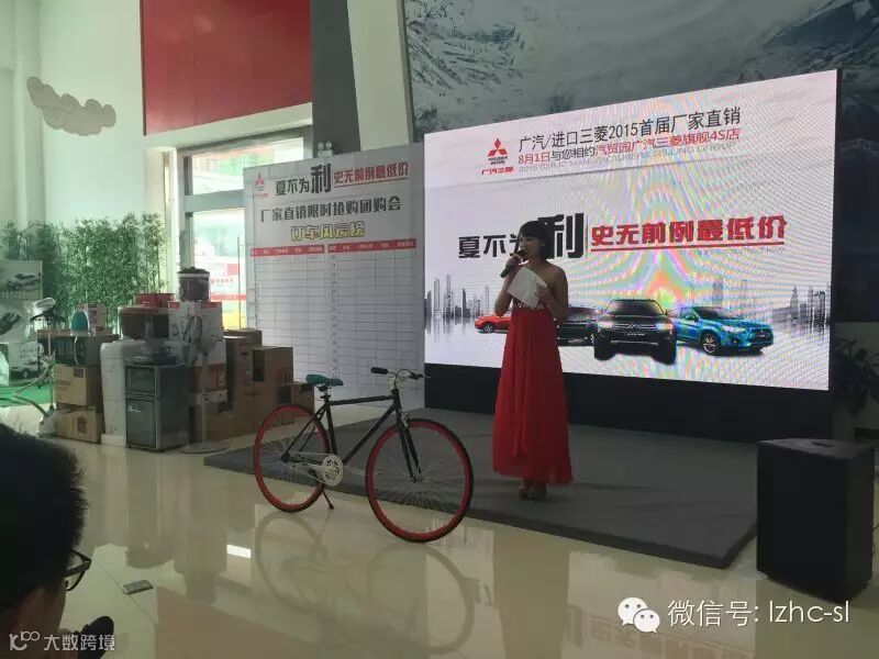主持人着一身红色礼服,介绍活动亮点、礼品价值、活动流程、注意事项等!就开始了我们的抢购活动!在前两个环节的预热中,很多幸运的朋友以超低的价格拍到了三菱原厂精品!