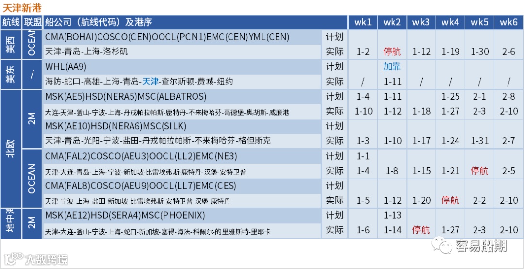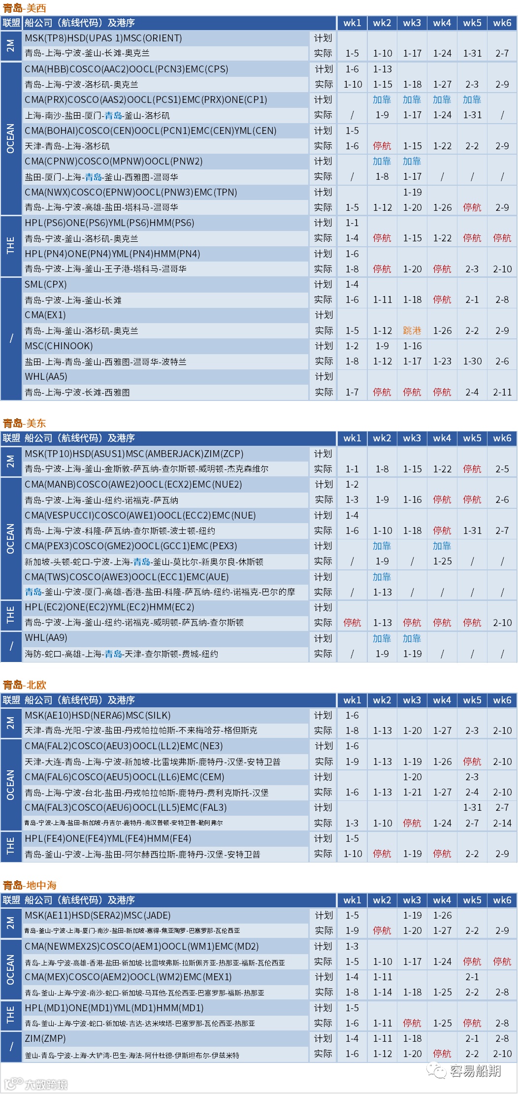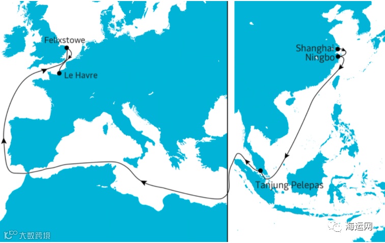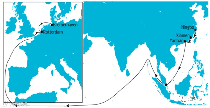 Alphaliner表示,2M联盟针对需求下滑以及中国农历新年后预期的淡季的运力管理战略,是将重点放在6个亚洲-北欧航线中的2个,包括削减4个AE55/Griffin航次,以及取消AE1/Shogun航线。