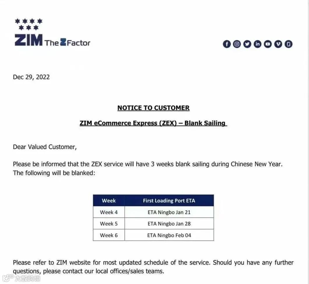 以星航运打造的从华南到美国西海岸洛杉矶的专为时效要求高的货物而定制的全新货物快运产品——以星航运电商快线(ZEX)春节期间停航三水。