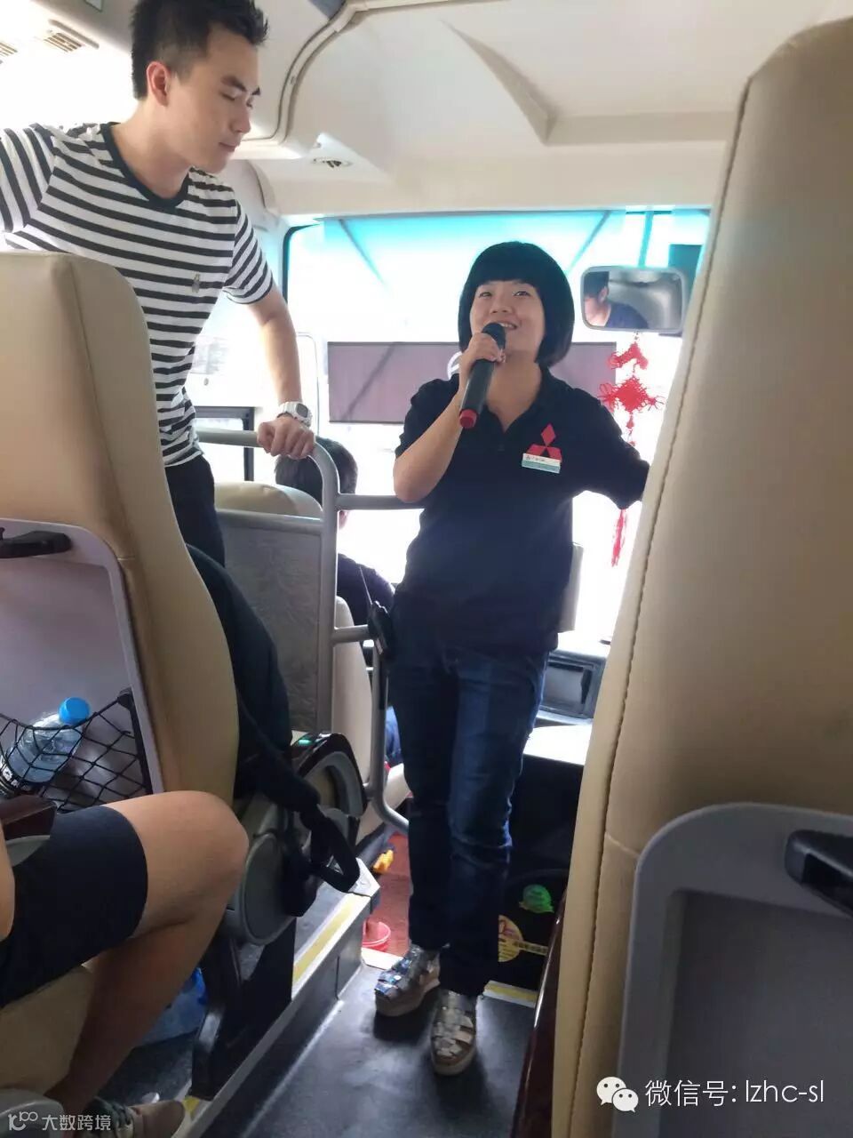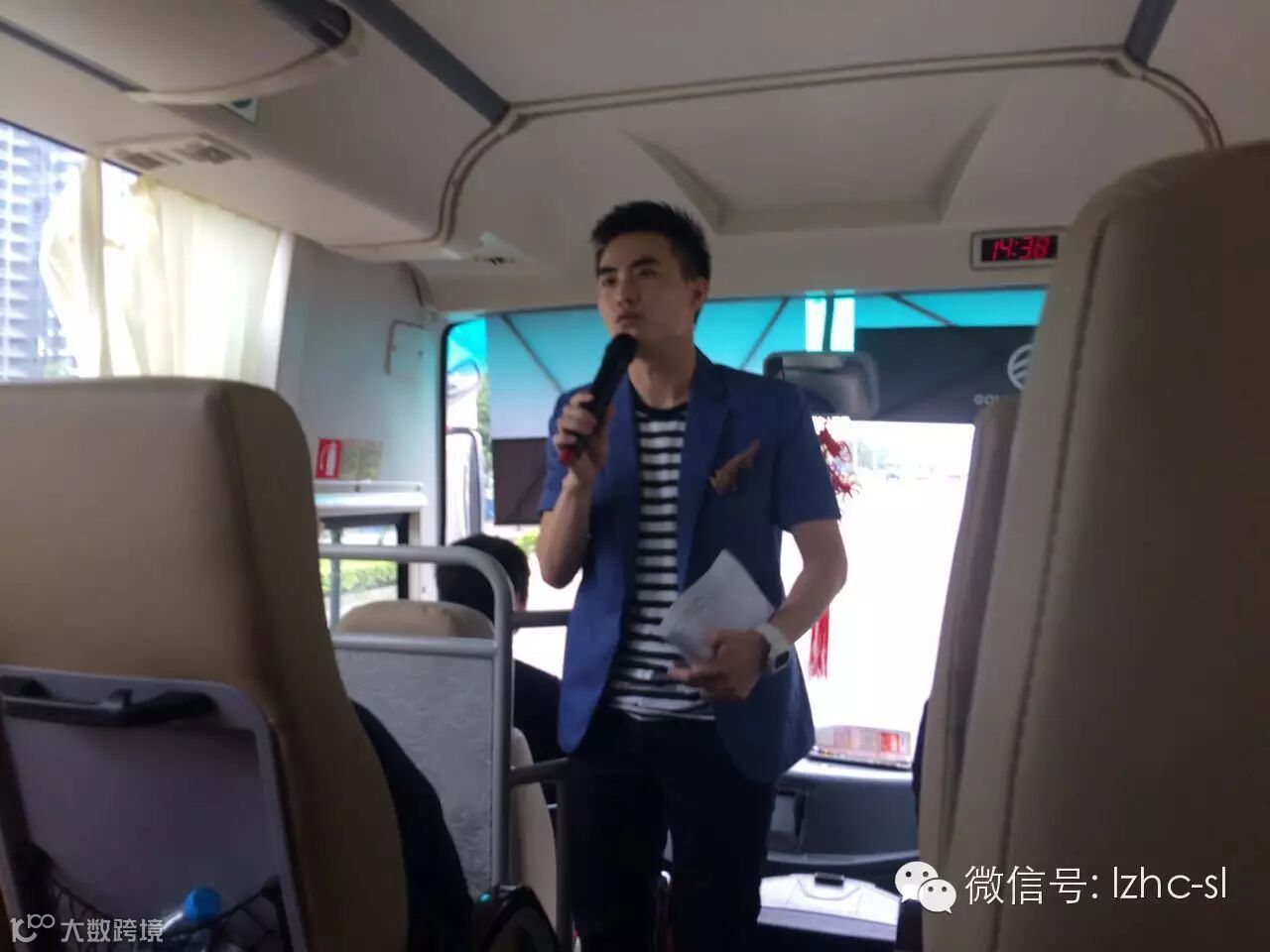 主持人在车上介绍试驾会的场地及流程。