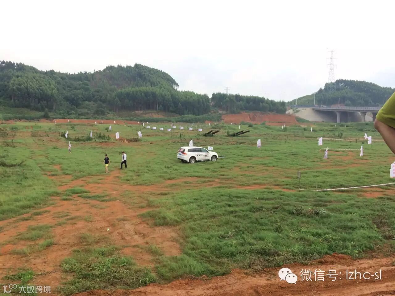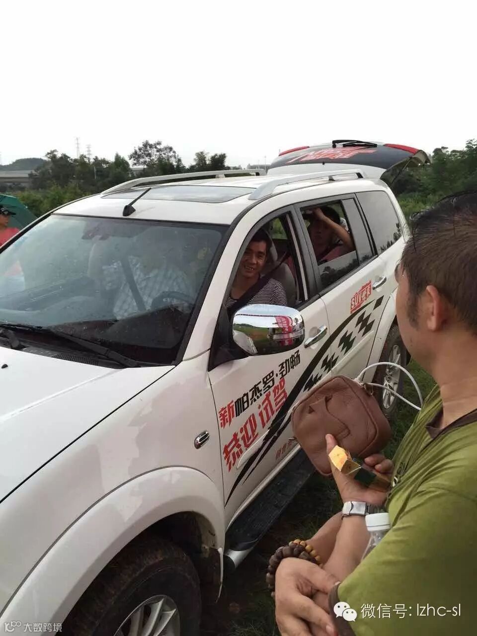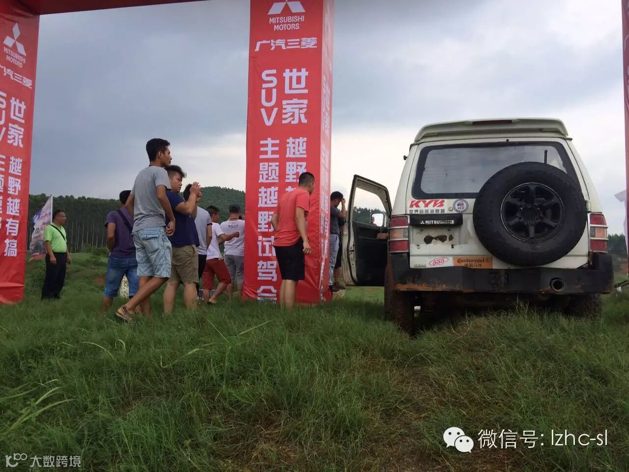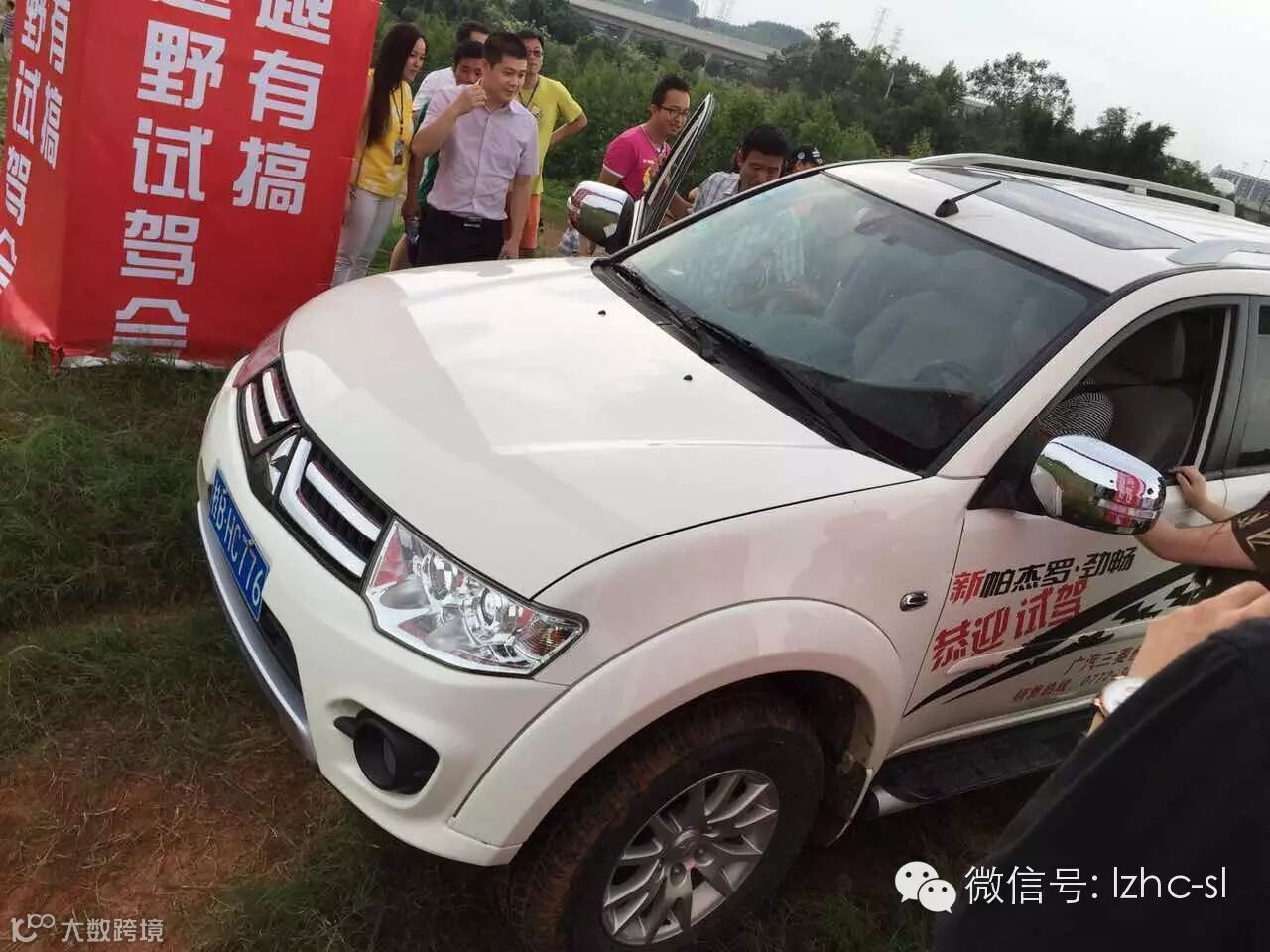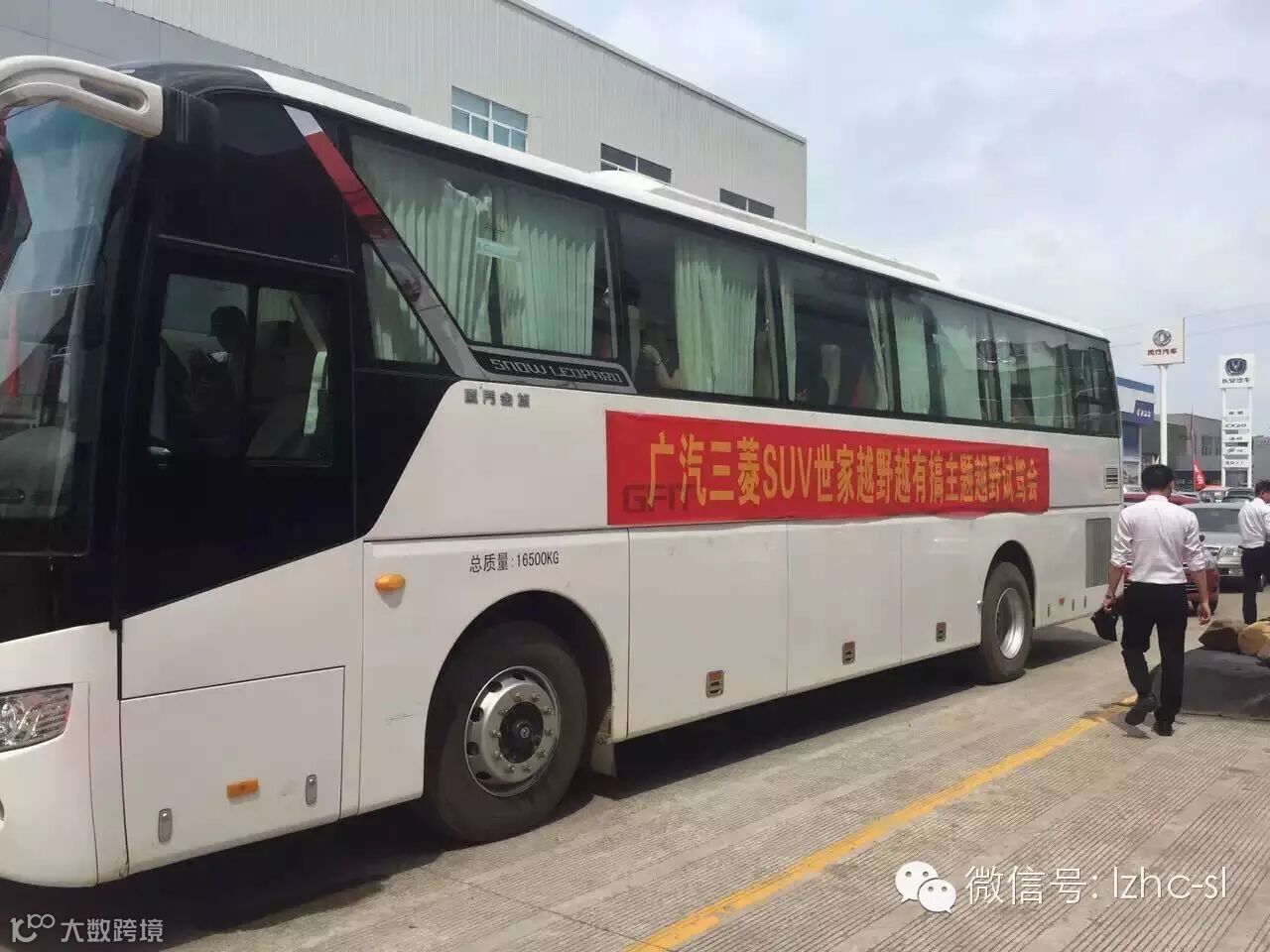 活动大巴车下午2点整准时在广汽进口三菱店门口接客户去越野试驾会的现场。