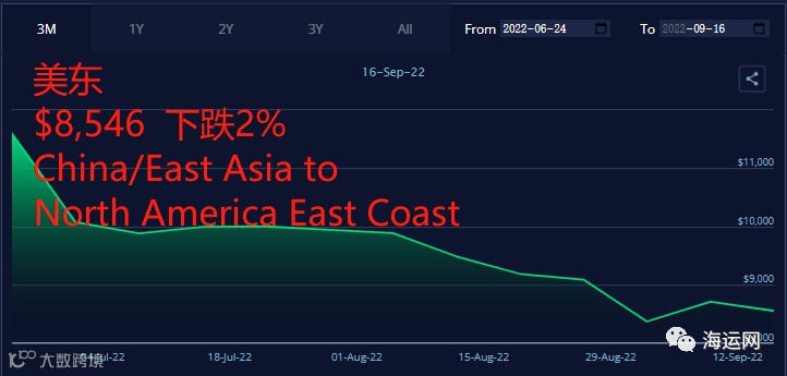 美东下跌2%至8542美元/FEU; -