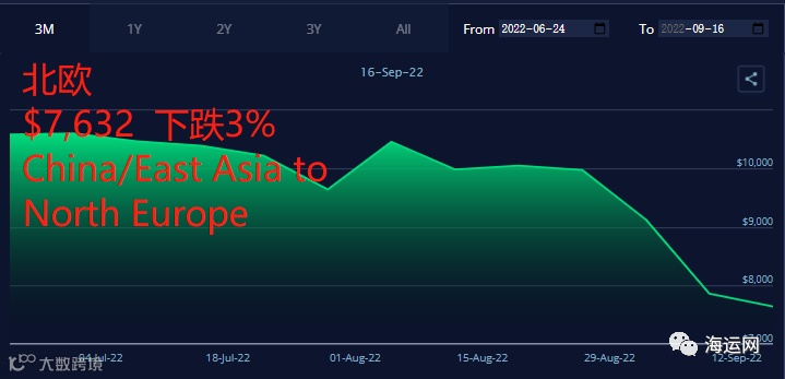 北欧下跌3%至7632美元/FEU。