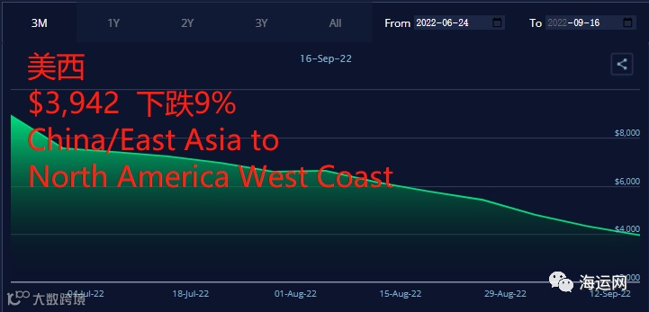 美西大幅下跌9%至3942美元/FEU; -