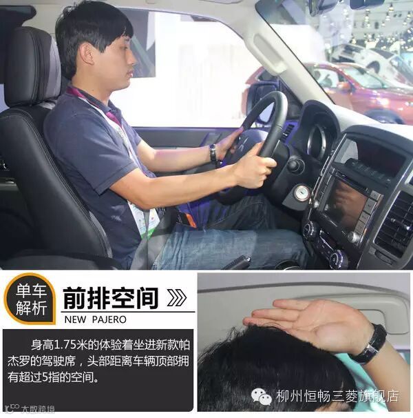 在储物空间足以满足不同需求的同时,新款帕杰罗的乘坐空间表现十分出色。当身高1.75米的体验者进入到新款帕杰罗的驾驶席,调整到最佳坐姿后,在保证腿部空间足够充裕的同时,头部空间也同样出色,拥有距离驾驶舱顶部超过五指的长度,足以满足不同身高消费者的需求。