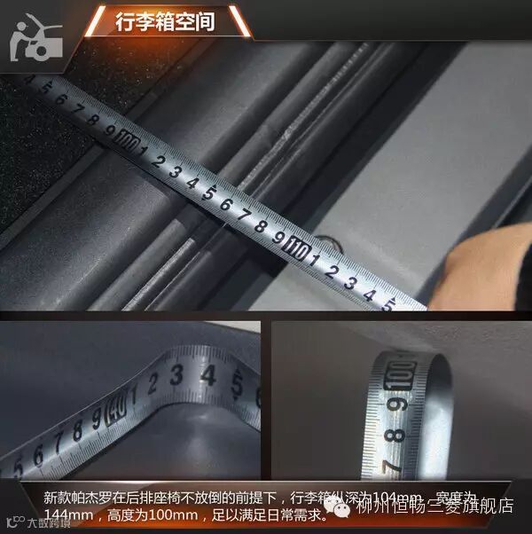 三菱帕杰罗作为一款纯粹的越野SUV,对于经常出门旅行的消费者来说,行李箱空间无疑是最重要部分,而大空间所带来的便利性也是不言而喻。全新帕杰罗在后排座椅不放倒的情况下,行李箱纵深长度为1.04米,宽度为1.44米,高度可达1米,可同时放下多个旅行箱以及背包等等。如果消费者寻求更大的空间,还可放倒后排座椅,实用性进一步增强。
