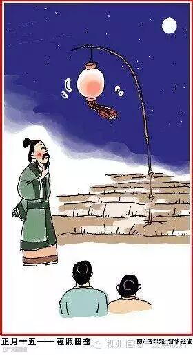 正月十五,夜照田蚕(神)。观颜色判断一年的丰歉,后演化为元宵节观灯。