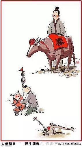 大年初五,艮牛耕春。五路接财神,东西南北中,财富五路通。