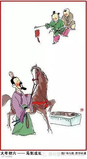 大年初六,马到成功。沥酒拜街中。万户千门看,无人不送穷。