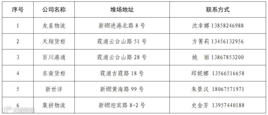 关于北仑开放首批仓库和第二批外堆场的告知函
