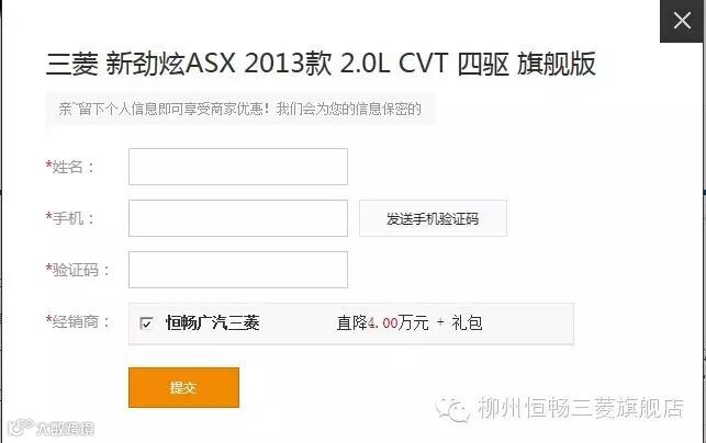 2、选择特卖车型:三菱新劲炫ASX、三菱欧蓝德、三菱帕杰罗