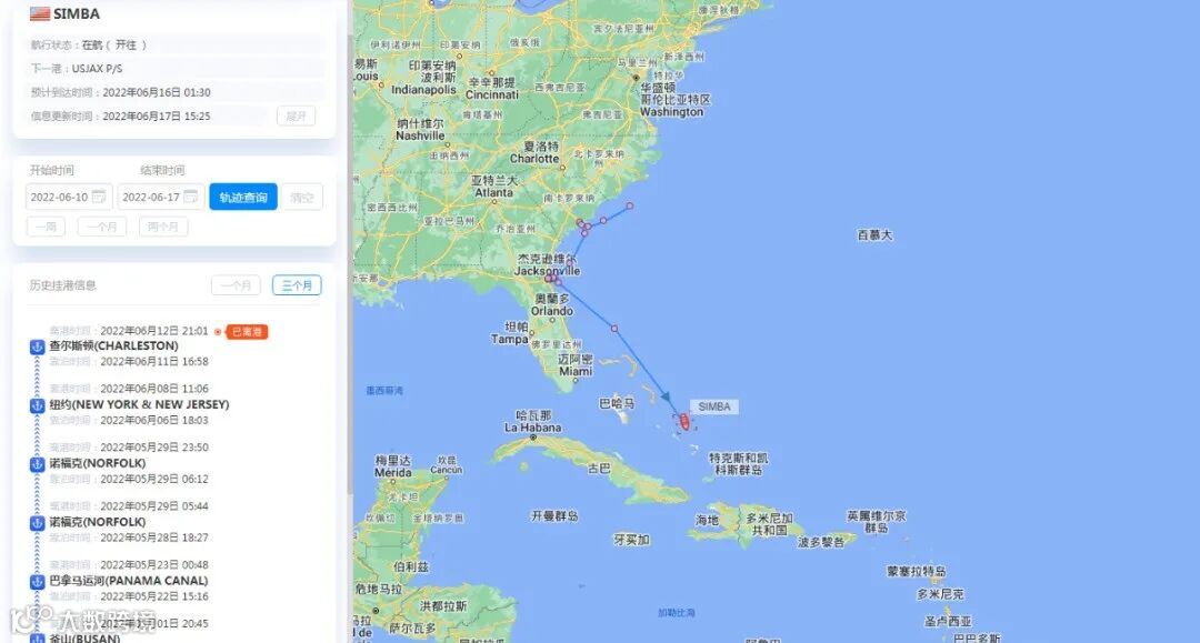据美国海关和边境保护局称,6月15日,一艘集装箱船“SIMBA”在航行至佛罗里达州杰克逊维尔港的入口航道时,3名船员从船上跳了下去。