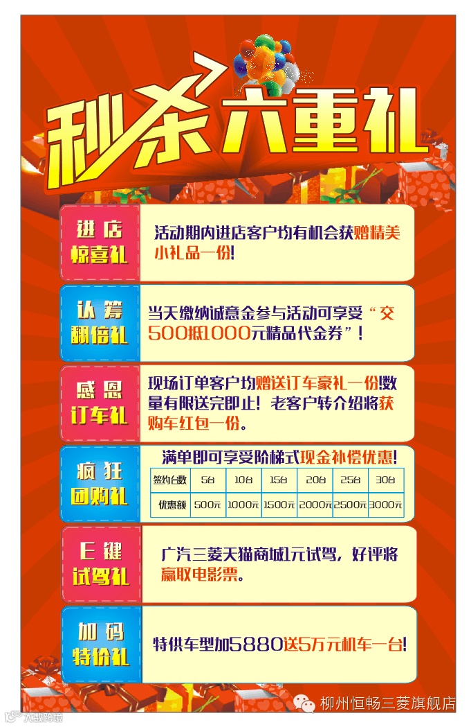 广汽三菱柳州4S店,于本周末举行华南地区限时团购会,只要到店的朋友们,除了车展价同惠享以外,活动期间还有多重礼让你拿礼拿到手软,笑不合嘴。更有《速度与激情7》电影票奉上,与您共享视觉盛宴!明天最后一天了,限时限量,赶紧抓住机会吧!