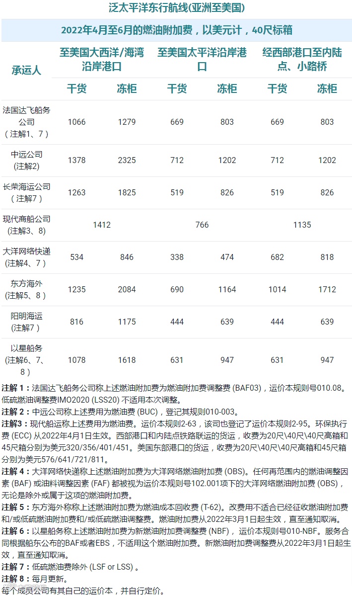 MSC在3月14日发布通知,从2022年4月15日起,在情况稳定之前,MSC将对所有亚洲交易的现货和季度合约,从按每月的费率改为按两周的费率重新计算全球燃油附加费,直至另行通知。